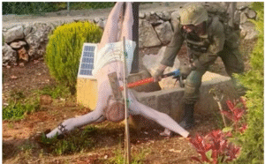 Fonte: https://www.timesofisrael.com/idf-says-image-of-soldier-destroying-jesus-statue-in-lebanon-is-real-vows-action/
